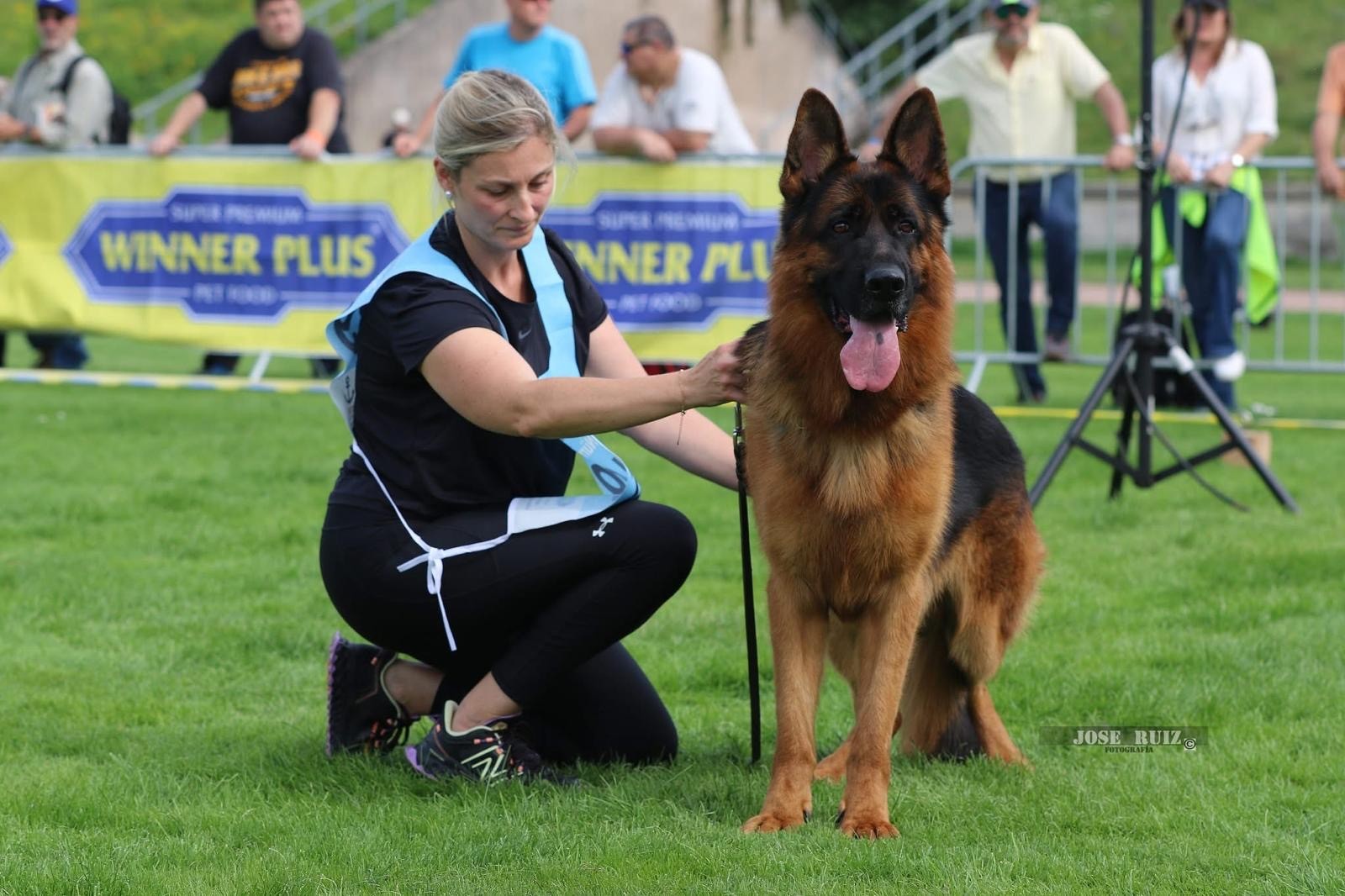 Bhoss war in hervorragender Form. Wir haben ihn direkt nach der Standmusterung und bestandenem Schutzdienst erlaubt zurückgezogen. Wir sind auch sehr stolz auf seine Nachzucht. Aus knappen zwei Monaten Zuchtverwendung resultierten 13 gemeldete, sehr ausdrucks- und geprägestarke Nachkommen, die den Typ von Bhoss und die Vorteile seiner Mutterlinie über Kara erkennbar nachhaltig fortsetzen! Wir bedanken uns sehr bei den Züchtern aus aller Welt (Europa, Mexico, Mongolei), die keine Mühen gescheut haben, diese ganz jungen Bhoss-Kinder auf der deutschen Siegerschau auszustellen!