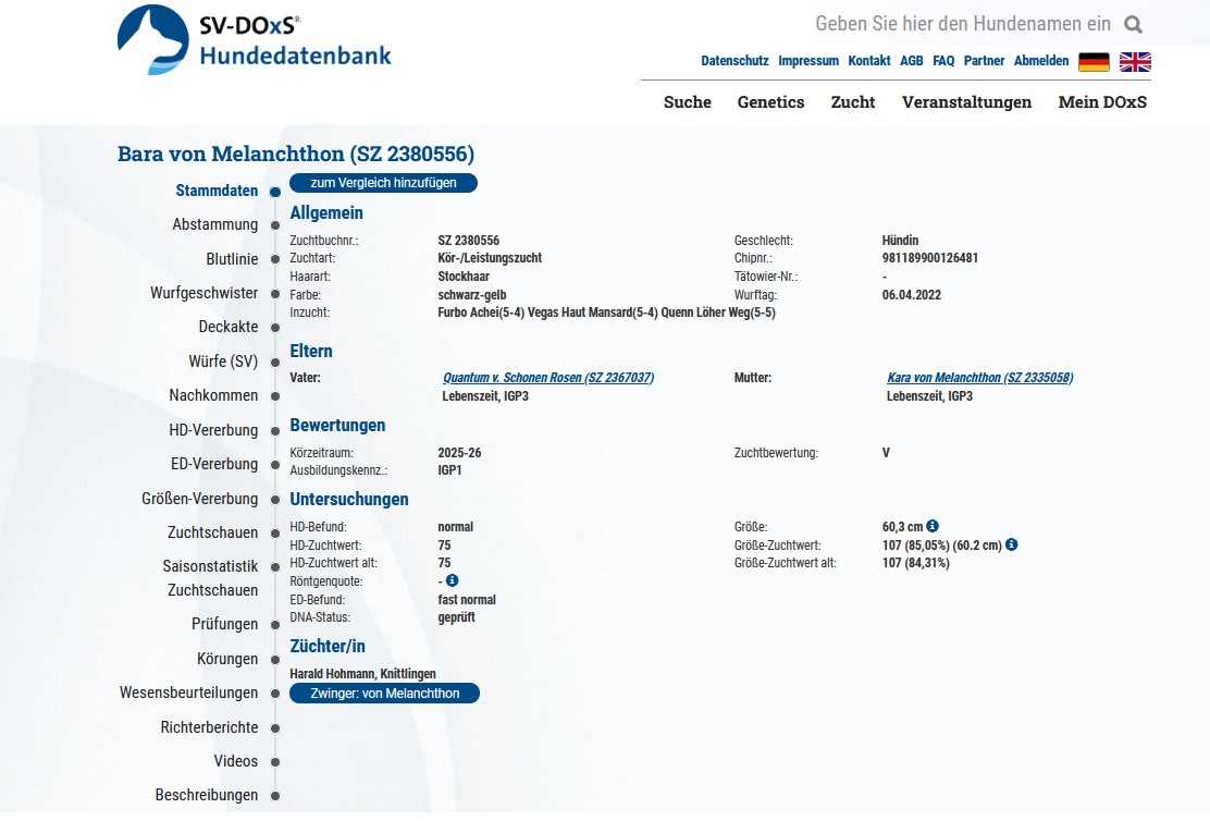Auszug Körbericht: Besondere Vorzüge |