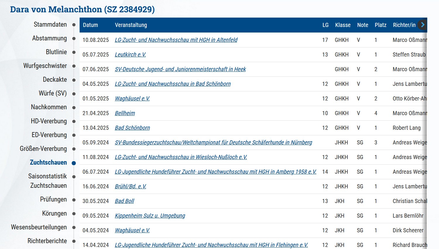 Zuchtschauen 2025|2024 (hierzu Fotos unter Aktuelles|News)