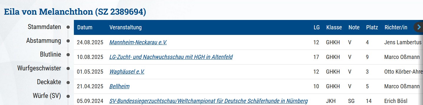 Zuchtschauen 2025 (Fotos hierzu unter Aktuelles|News)